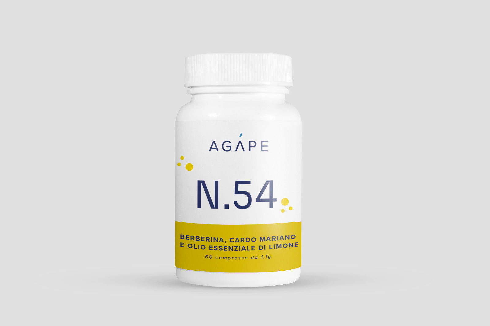 AGAPE N.54 è pensato per sostenere il metabolismo epatico, favorire la digestione, regolare il transito intestinale e contribuire al benessere cardiovascolare.